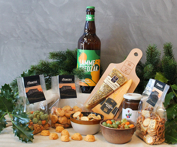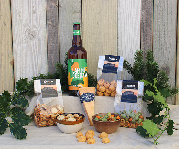 Zoomers snack mix | Zoomers pretzels | Zoomers cheese bites | Reypenaer mature cheese | Scheldebrouwerij Lamme Goedzak 0.75 cl | Two snack bowls | A voucher for 10% off an overnight stay at Zoomers