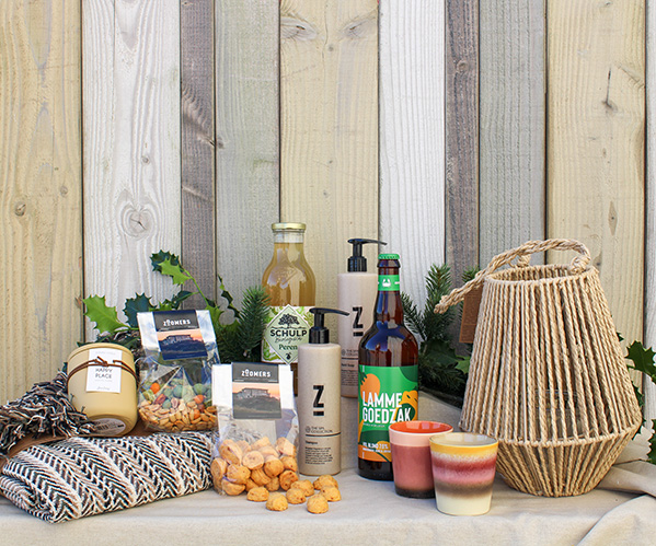 A warm package full of little moments together. Enjoy the Zoomers snack mix, crackers, a glass of Zeezuiper or organic pear juice. Light the lantern, snuggle under the blanket, and drink from the HKLiving mugs. With Zoomers Handwash, Bodywash and scented candle, you can bring the tranquillity of Zoomers into your home. And with the 10% discount on overnight stays, you can connect with what really matters in the new year.