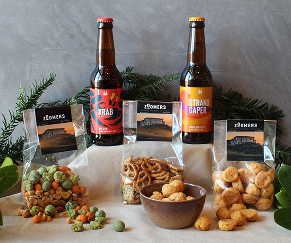 Zoomers snack mix | Zoomers pretzels | Zoomers cheese bites | Scheldebrouwerij Krab | Scheldebrouwerij Strandgaper | Snack bowl | A voucher for 10% off an overnight stay at Zoomers