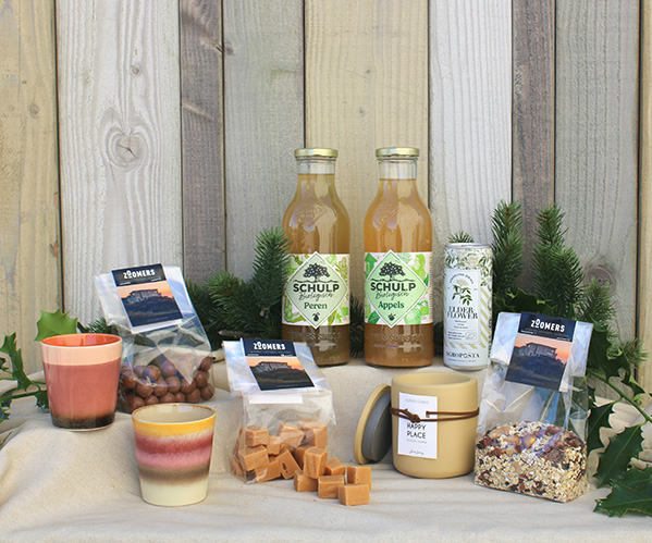 Zoomers snack mix | Zoomers snack crackers | Organic apple juice | Agroposta handmade lemonade | Scheldebier Krab | Scheldebier Strandgaper | Twisted candles | Warm blanket | Two HKLiving mugs | A 10% discount voucher for an overnight stay at Zoomers